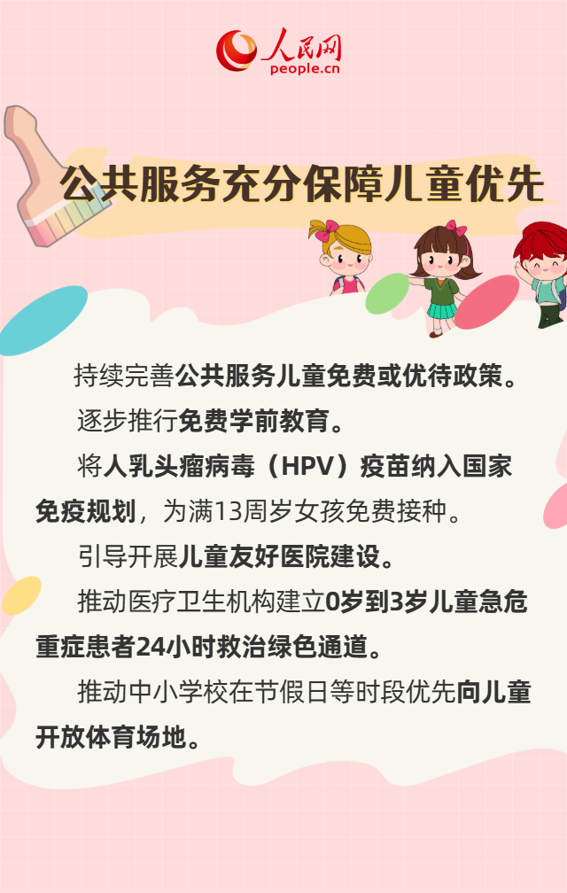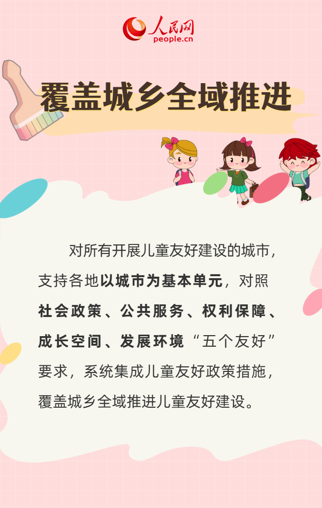 儿童友好建设是建设生育友好型社会,推动各类资金资源“投资于人”、优先服务于儿童的重要路径。近日,国家发展改革委、国务院妇儿工委办公室联合印发《关于在全社会推进儿童友好建设的意见》。这份文件提出了哪些政策举措?将给有娃家庭带来哪些利好?一起来看。
